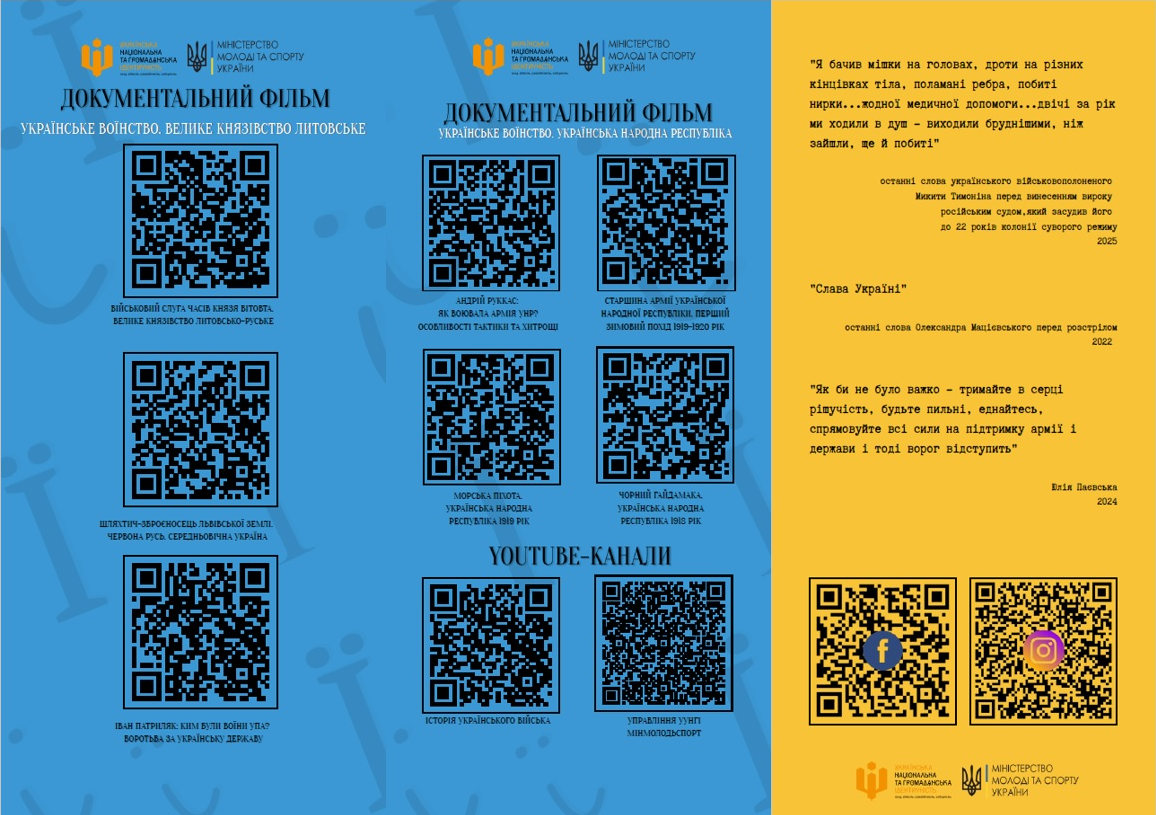 Інформаційні матеріали розроблені Міністерством молоді та спорту України у співпраці з партнерами з метою популяризації історії України, зокрема боротьби українського народу за самовизначення і творення власної держави, видатних особистостей українського державотворення:
