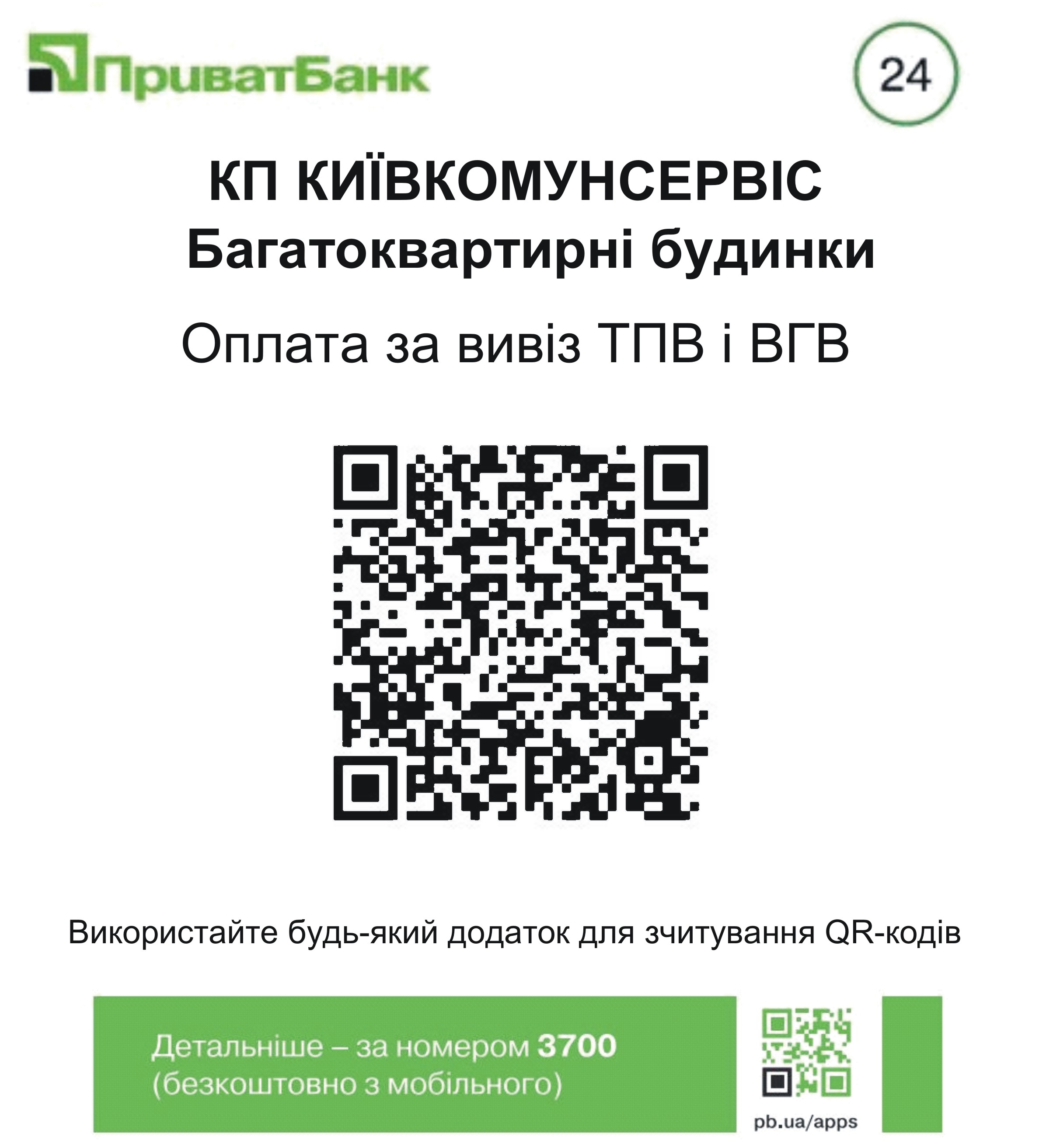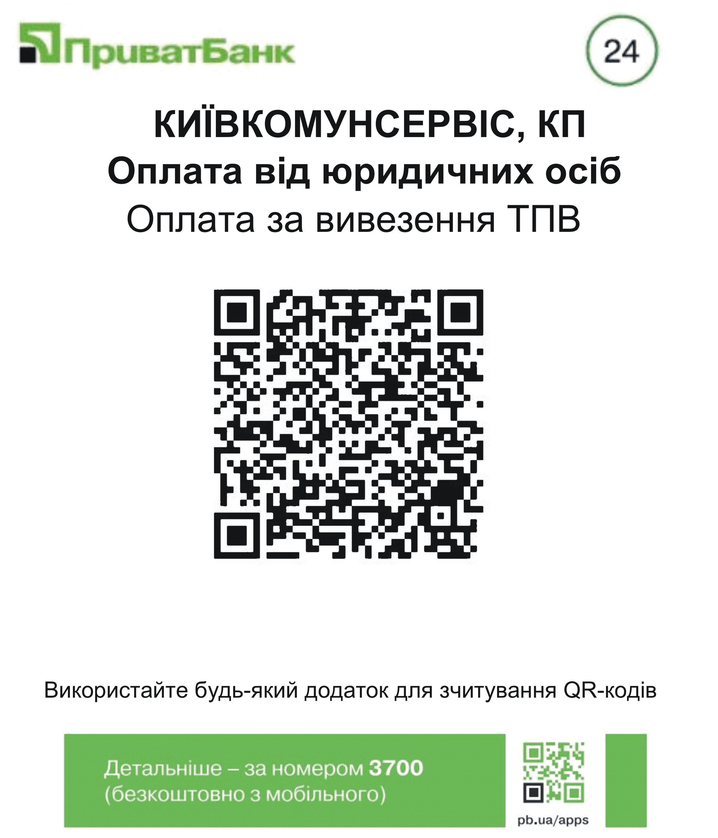 Тут Ви зможете швидко, зручно й безпечно сплатити за послугу вивезення побутових відходів натиснувши на відповідне посилання, або QR-кодом, зчитавши його будь-яким додатком.