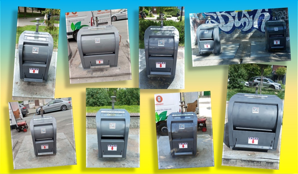 На контейнерах нанесено наліпки з QR-кодом (чат-бот Підприємства в Telegram з інформацією про послугу) та мобільним телефоном, за допомогою яких можна повідомити про несправність контейнера, наповнення чи складовані неналежним чином побутові або великогабаритні відходи поряд.